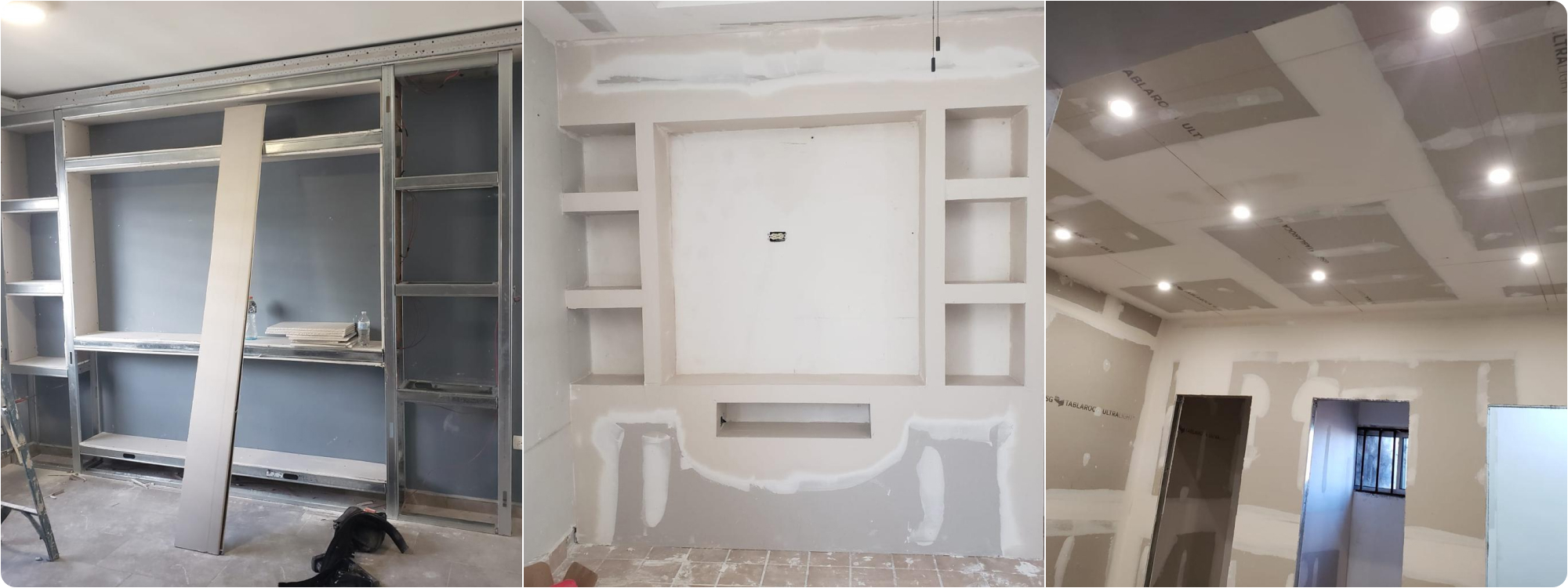 Realizamos trabajos con sheetrock, oficinas, repisas, barras, cielos falsos etc. Al igual que pintura e instalación eléctrica, luces led, spots, tiras led, cambio de plafones y galletas, etc.
